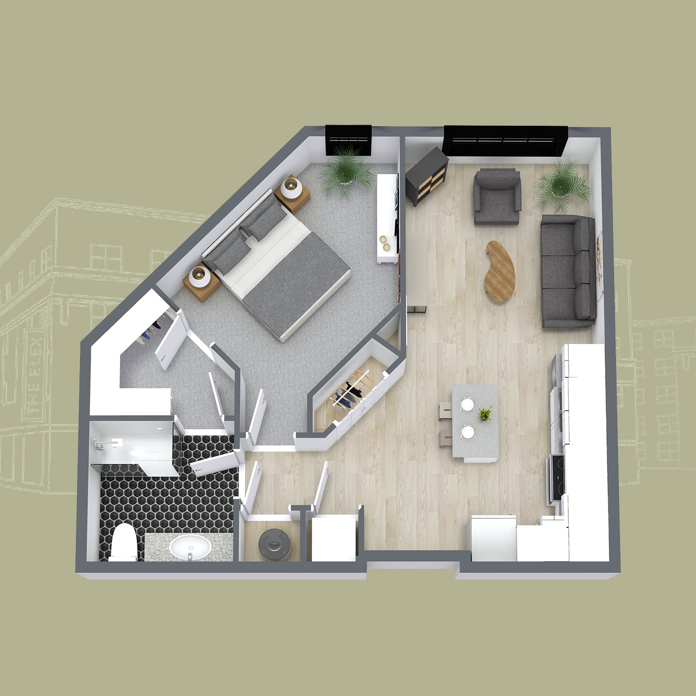 1 Bedroom + 1 Bathroom